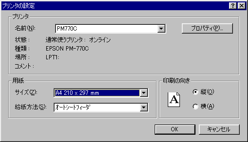a.ここで別のプリンタを選択すると贈答管理プログラム実行中はそのプリンタが「システムの通常使用するプリンタ」に設定されます(これは制限事項です)。終了時には元のプリンタに戻されます。
