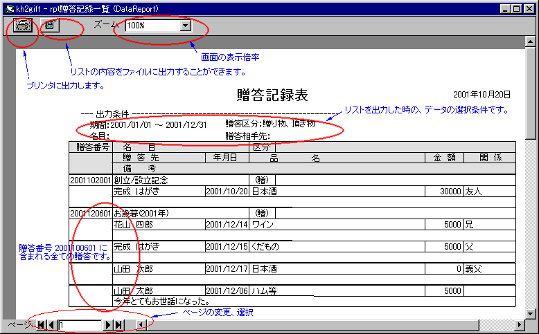 贈答記録表の印刷